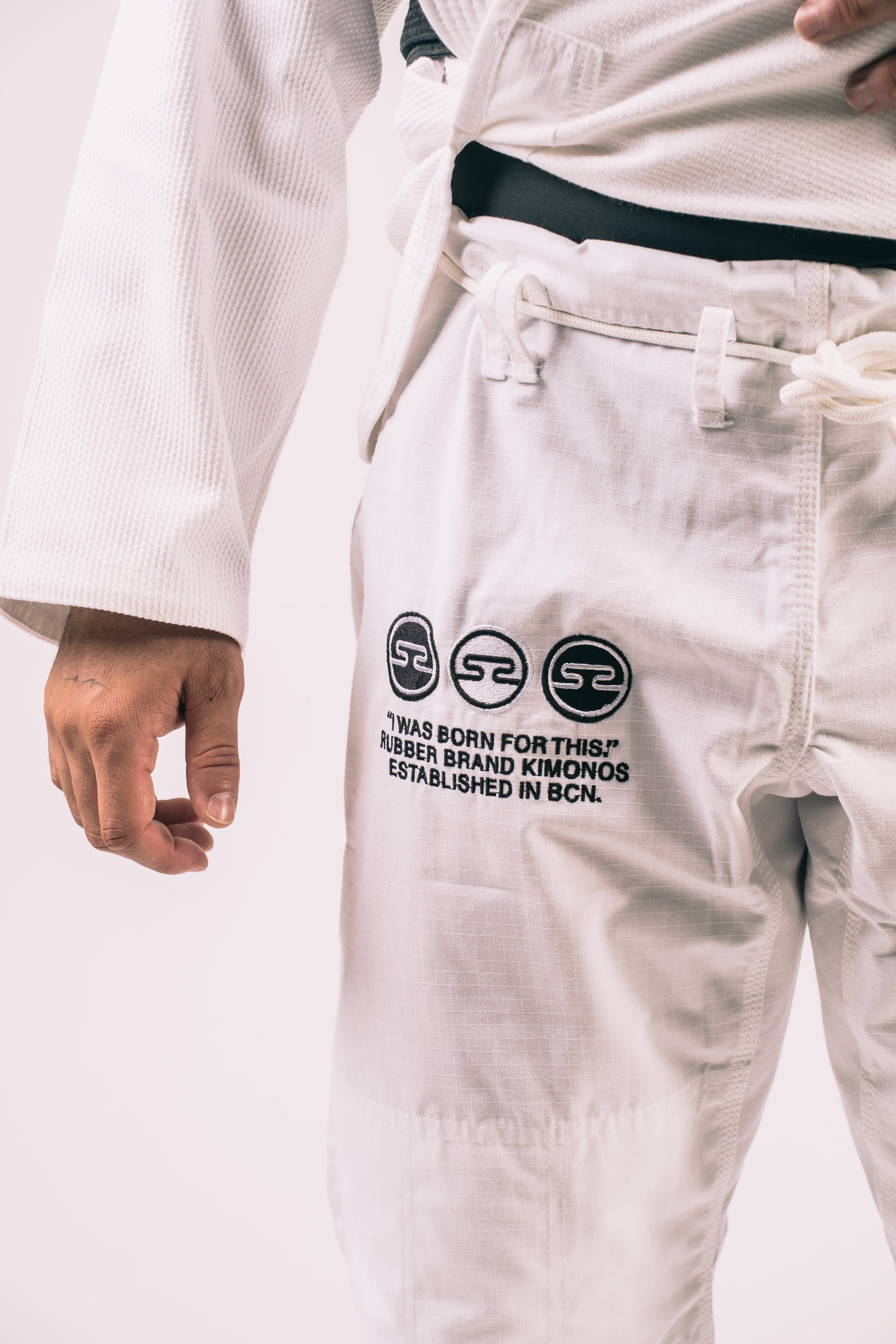 Confeccionado con un tejido ligero y duradero, garantiza libertad de movimiento y máxima resistencia frente a agarres y derribos. Sus costuras reforzadas y corte entallado proporcionan un ajuste perfecto, mientras que sus bordados en blanco y negro aportan un diseño elegante y minimalista.